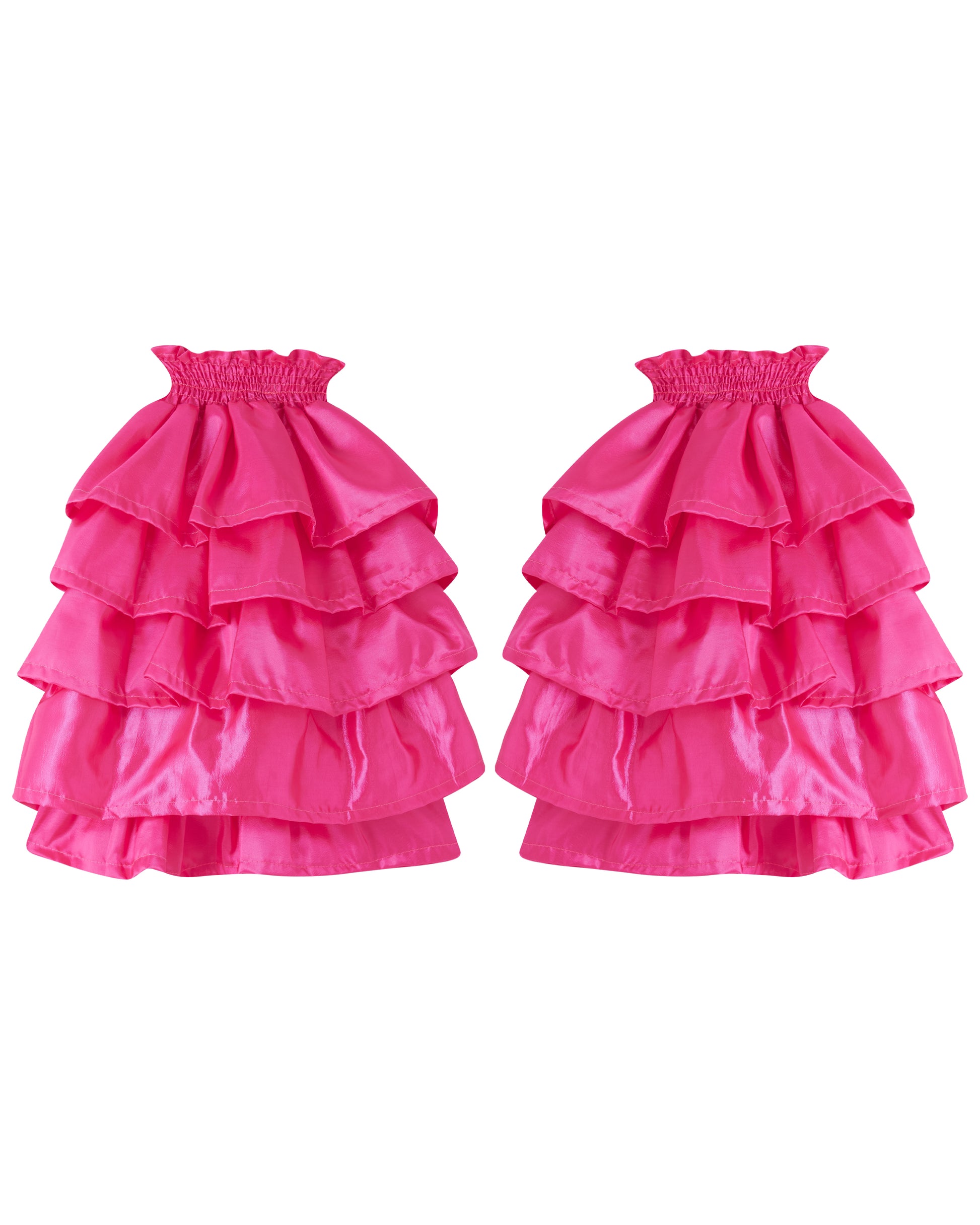 The dreamiest versatile accessory, Delta Of Phoenix Ruffles of dreams. Five tiers of ruffled luxury fuchsia pink taffeta, can be styled as leg ruffles or sleeves. Elasticated at top tier, for the most comfortable and wearable fit. Created over 3 hours, using locally sourced luxury fabrics, each order is handmade with love at Delta HQ, London by Francesca Newman.