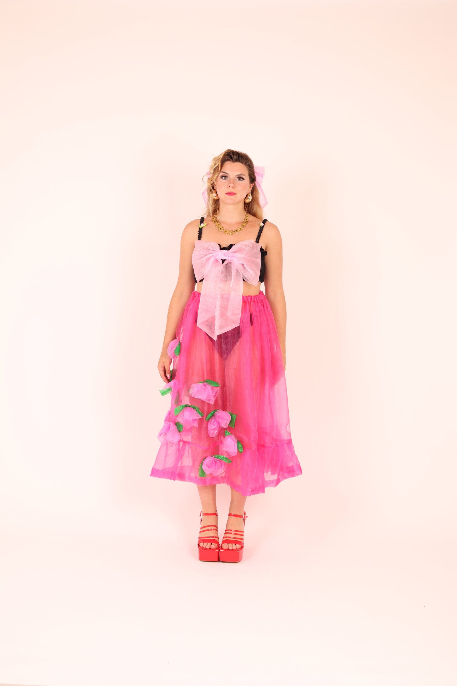 FLEURETTE ✧ Fuchsia Pink Organza Midi Skirt With Cerise Organza Roses