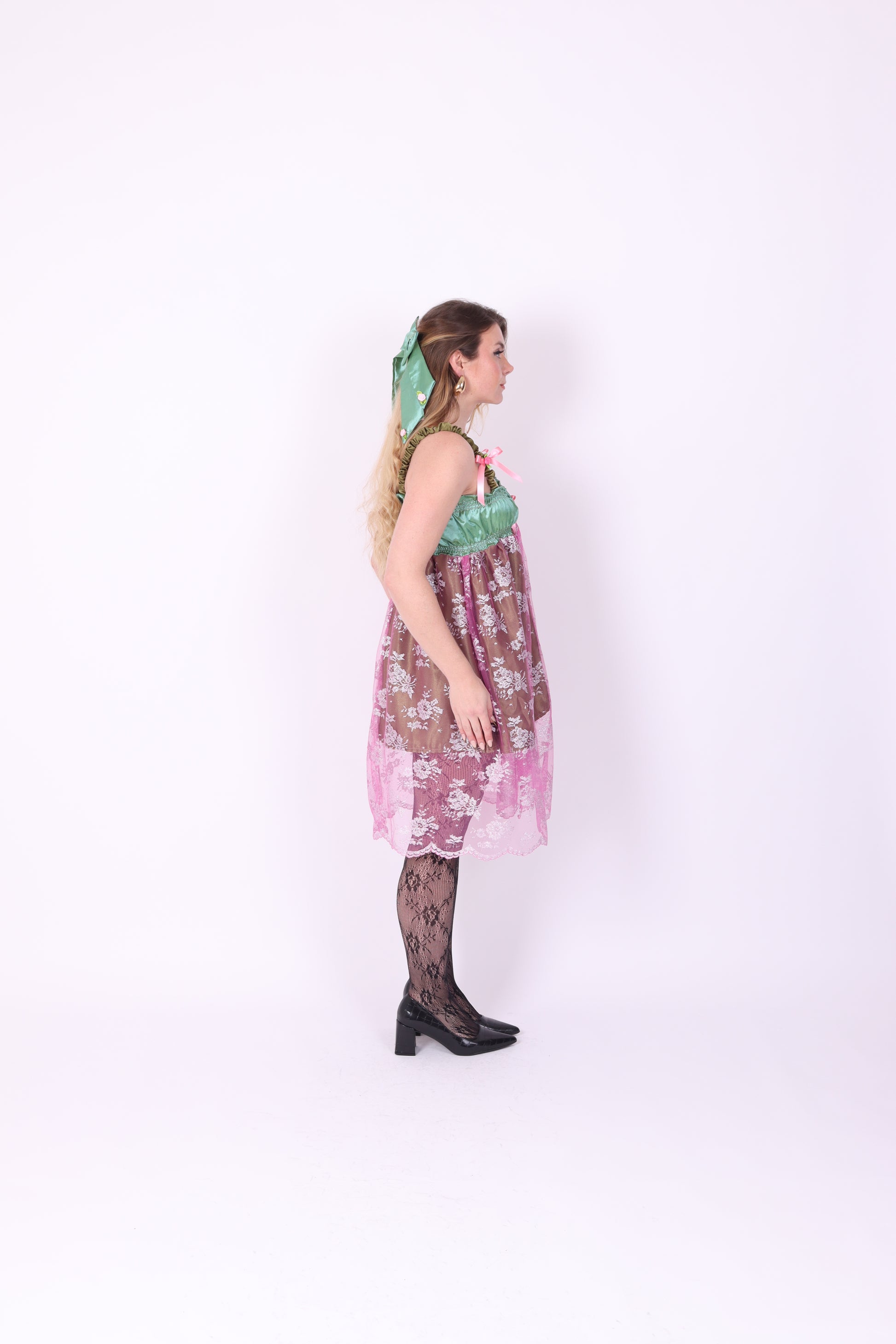 SERAPHINA ✧ Green and Pink Lace Babydoll Dress